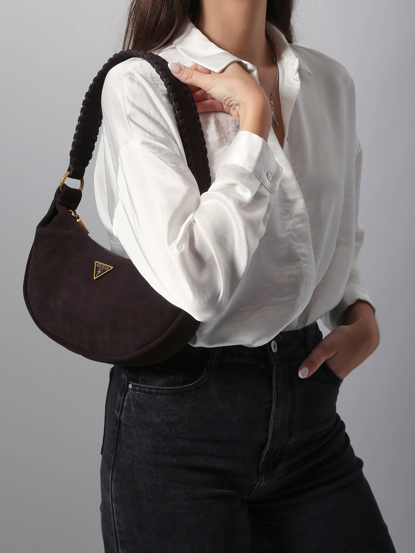 The Amita Guess crossbody bag, crafted from high-quality cowhide leather, combines elegance, modernity, and practicality for sophisticated everyday use. Its zip closure secures your belongings while adding a refined touch to its sleek design. Versatile and comfortable, it can be worn as a crossbody with its 30 cm strap, offering freedom of movement and ease of use. The interior features one main compartment, a zip pocket, and three card slots, providing organized storage for essentials such as your phone, wallet, and keys. Compact yet functional, the Amita bag impresses with its modern lines, meticulous finishing, and soft leather feel. This bag quickly becomes a wardrobe essential, perfect for complementing both urban and casual outfits with style and sophistication, while adding a touch of timeless chic to your daily life.